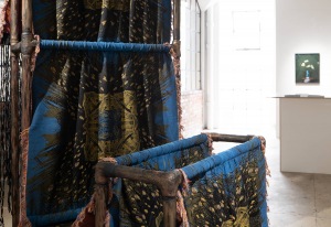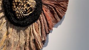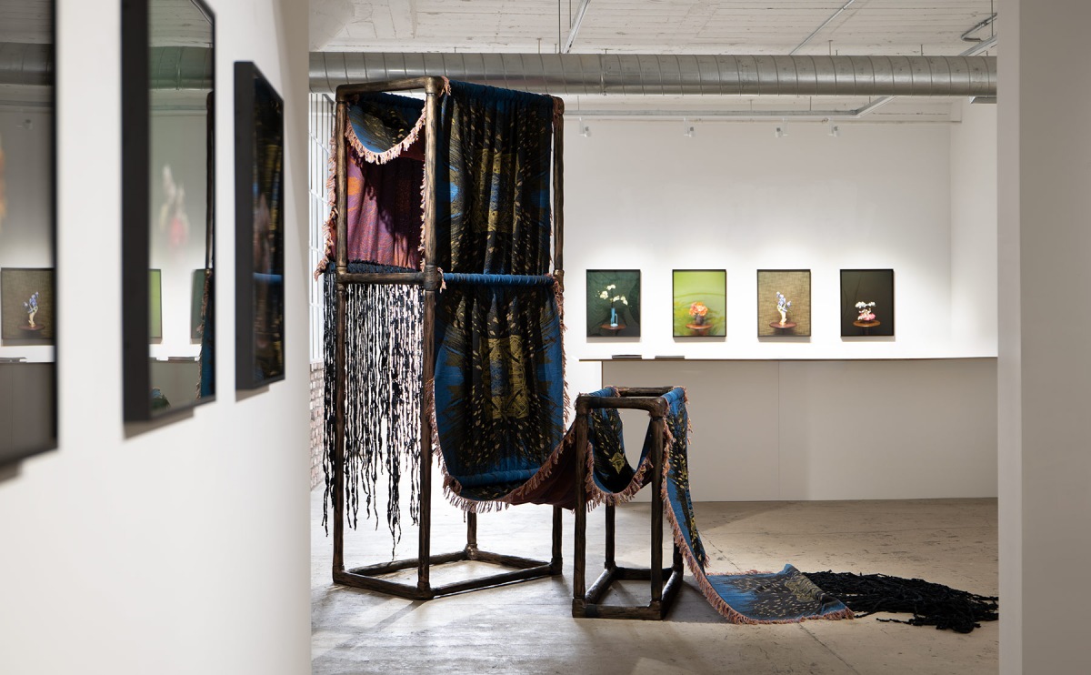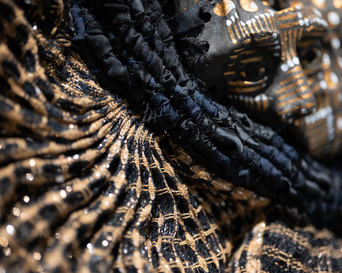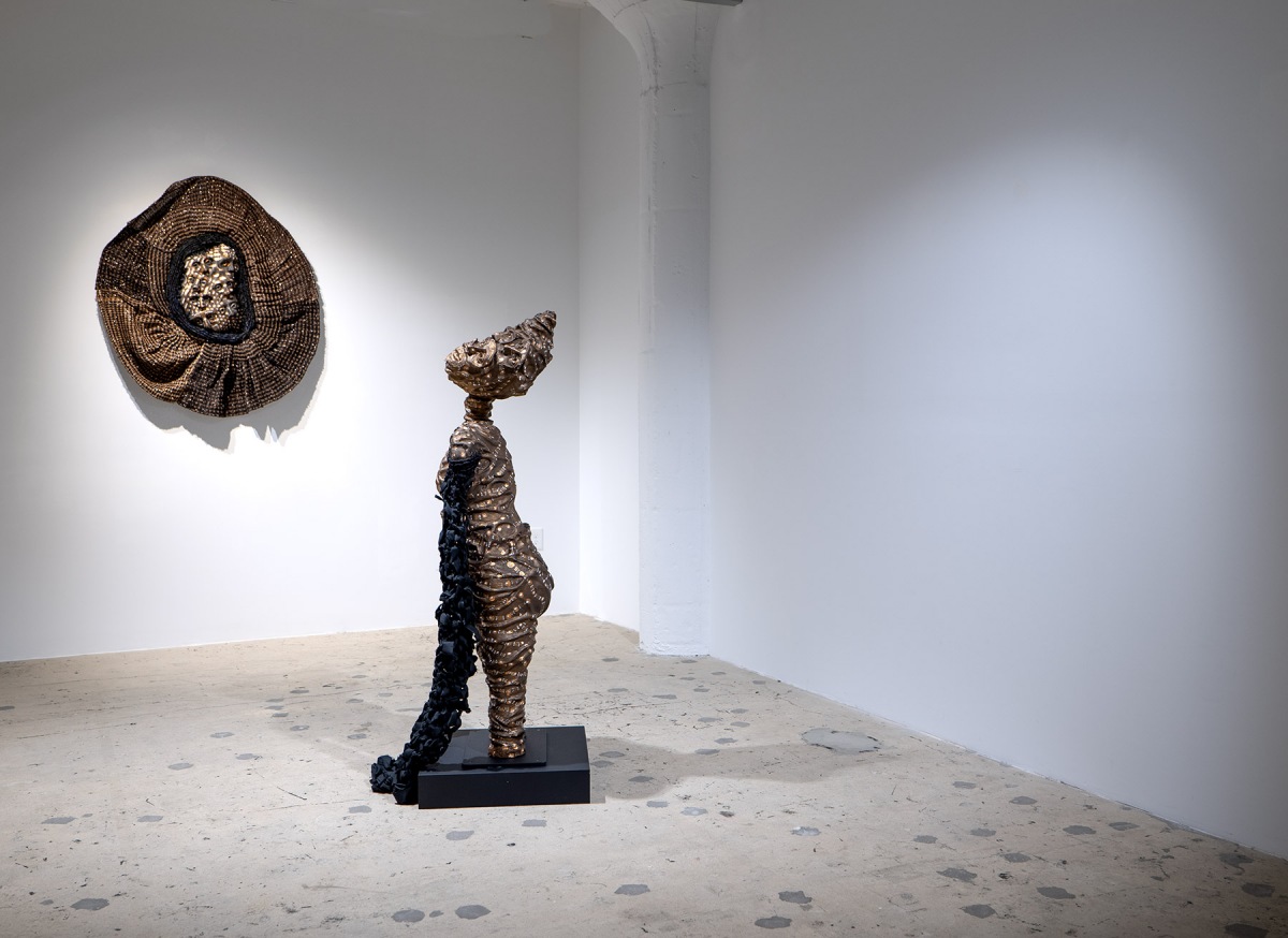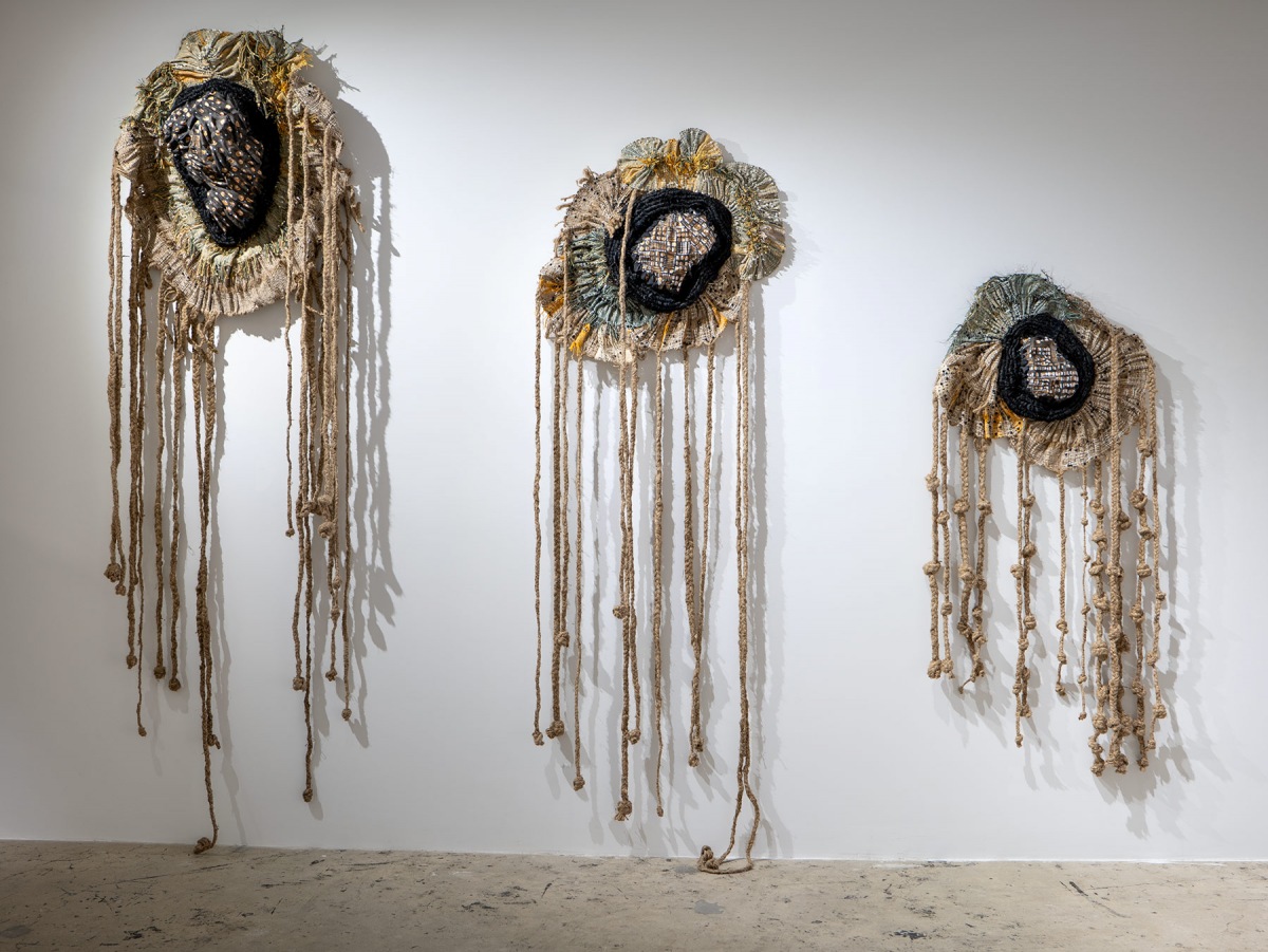 In Amalia Galdona Broche’s first exhibition with the gallery (2020), she wove, stitched, and braided “Companions of Concealment,” a hybrid of female and animal forms – a supernatural cosmology of ancestral beings who are intermediaries between humans and the spirit world, in death, birth, healing, and conflicts. For her second exhibition, “Vestments of Time,” Galdona Broche considers the effects and duration of her immigration: “I was a child of the Cuban Revolution during the Special Period, a time of extreme economic adversity. Through sculpture and time-based media, I explore the fluid nature of identity, faith, memory of identity, transculturation and immigration, highlighting labor-intensive processes such as collecting, tearing, breaking, joining, weaving, knotting and assembling textiles and found materials. Referencing Spanish, as well as West African belief systems, rituals and imagery, I navigate the complex and fluid nature of history and identity.”