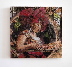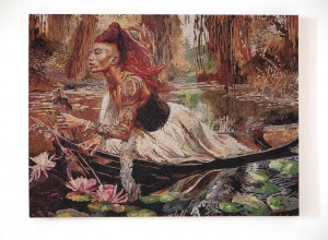 In her first exhibition Mustn’t in 2007, Vasta reframed Angela Carter’s feminist fairy tales depicting a mystical landscape where women with supernatural powers cavort in deadly play. Vasta’s second exhibition reflects the trophy portrait in glitter, this time with internet composites of adolescent females posed with their kill. Jamie Vasta then presented After Caravaggio – a contemporary reframing of Michelangelo Merisi da Caravaggio’s historic paintings. Vasta posed her coterie of friends and colleagues with props of today, turning gender and context on end. After the Hudson River School positioned Vasta’s glitter on wood landscapes in the traditions of 19th century landscape painting. True to her predilection of revisiting art history with a contemporary spin, Vasta turned her eye to the San Francisco Bay Area landscape as filtered through the lens of the Hudson River School of artists.