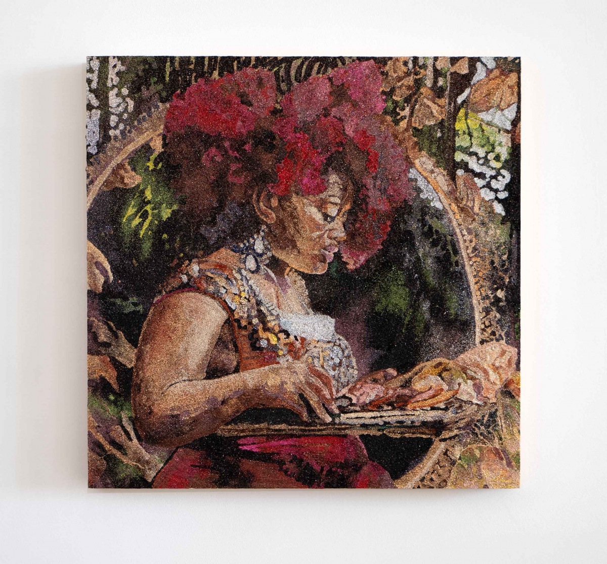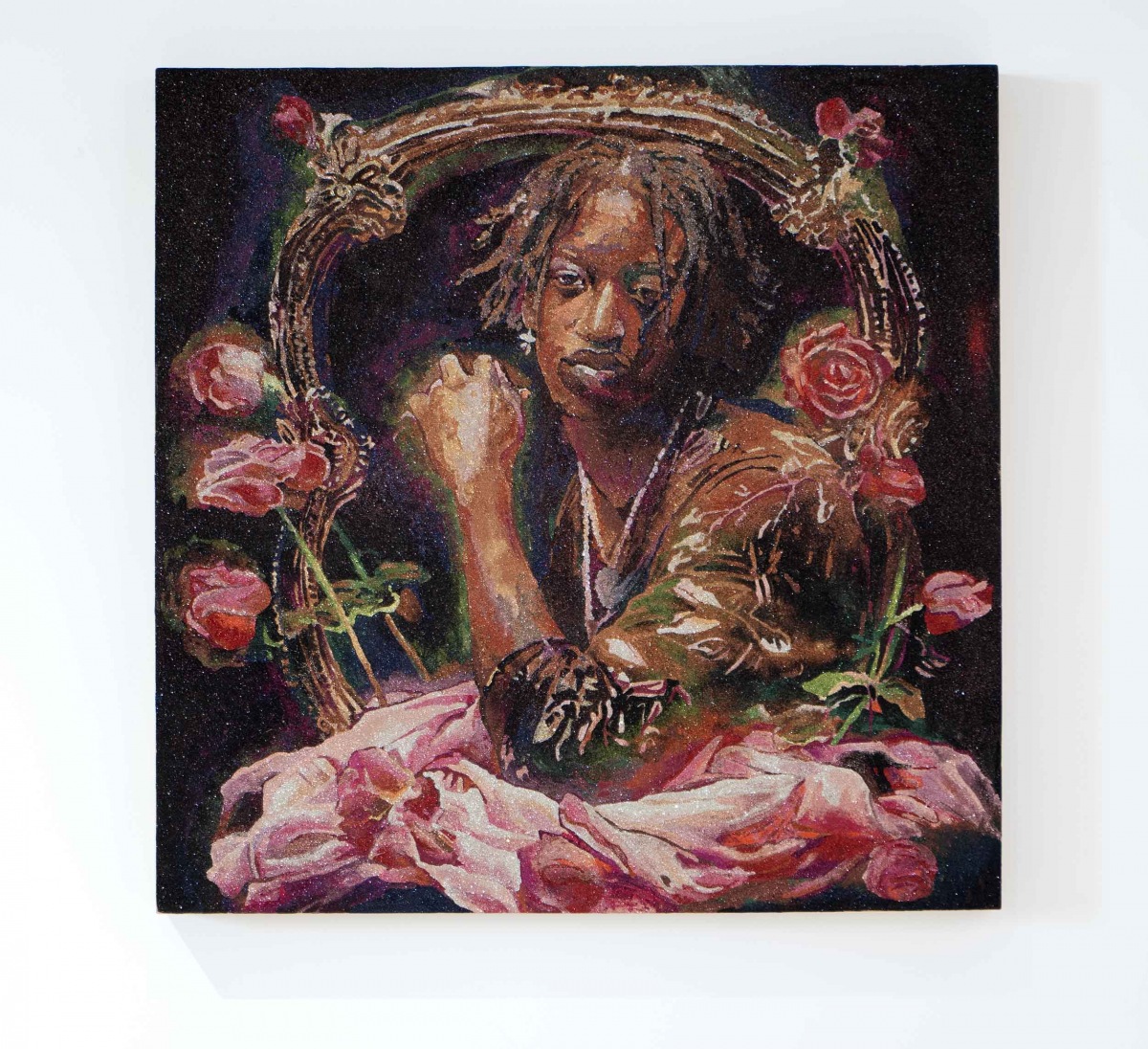 Vasta’s medium of choice, glitter has an elemental resonance carrying unexpected emotional resonance, however her masterly domination of material transforms the bombastic bits of reflective color to mannered, painterly refinement. Staging actors, friends and family within the LGBTQ + community, Vasta’s narrative series focus on art historical movements, contemporary culture and literary tales.