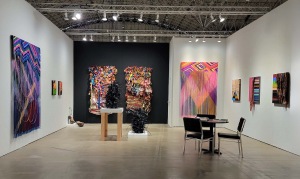 Presenting this extraordinary series offers more than a window into Morabito’s life and studio practice, it reveals an effective propaganda tool of early church and state: tapestries. Begun in 2018 and completed in 2020, Morabito unveils their series of religious tapestries with a subtle but explicit intervention, cloaking 15th- and 16th-century Renaissance paintings of Madonna and Child in flamboyant colors of drag—a Queer allegory turning sacred to Camp. Morabito remediates devotional paintings by artists such as DaVinci and Botticelli with accentuated day-glow colors and a stigmata presentation shimmering with gold beaded fringe. With this joyful celebration of sensorial imaginings, Morabito deftly reframes and reclaims the historic stigmatization and hypocrisy of the Catholic Church through queer transubstantiation. The best blasphemy is a slow burn.