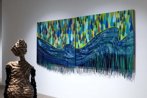 It’s a pleasure to present our upcoming solo exhibitions of John Paul Morabito—Our Lady of the Bathhouse and Jamie Vasta—House of Roses. The pairing of their one-person exhibitions provides the viewer an opportunity to delve into each artists’ remediation of art history through their respective media as they subvert treasured iconic paintings. Using nontraditional materials (Jamie Vasta, glitter and glue; John Paul Morabito, weaving and beads), they redress classical imagery with the aim of empowering those removed from the annals of art history.