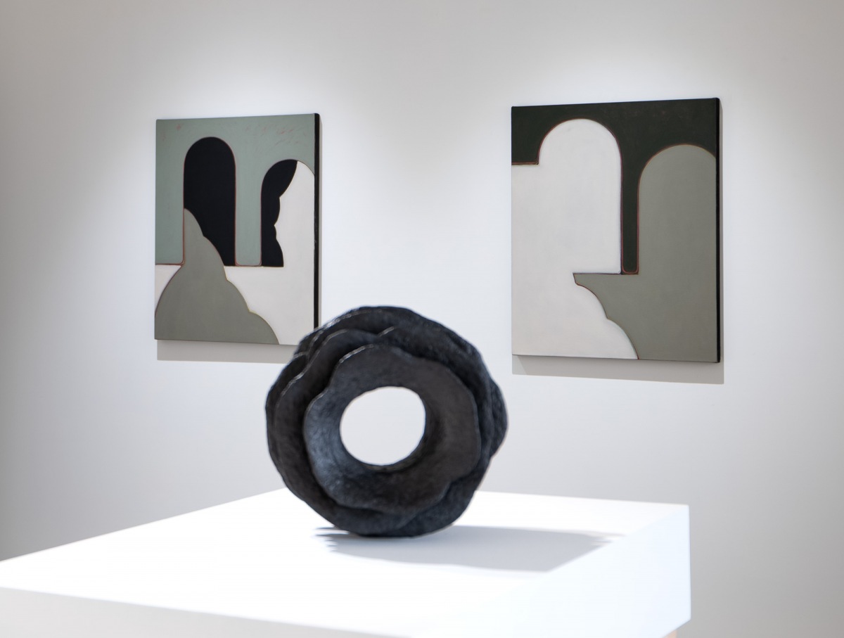 Mirena Kim approaches her intimate scale paintings with a reduced palette and a keen eye to architectural space. Her creative life began as a potter working primarily on the wheel. She had a fascination for the circle, at once nothing – empty, a zero – and everything, containing and encircling our lives. By keeping her palette restricted to two or three colors, often working tone on tone, Kim subtly carves out space in two and three dimensions.