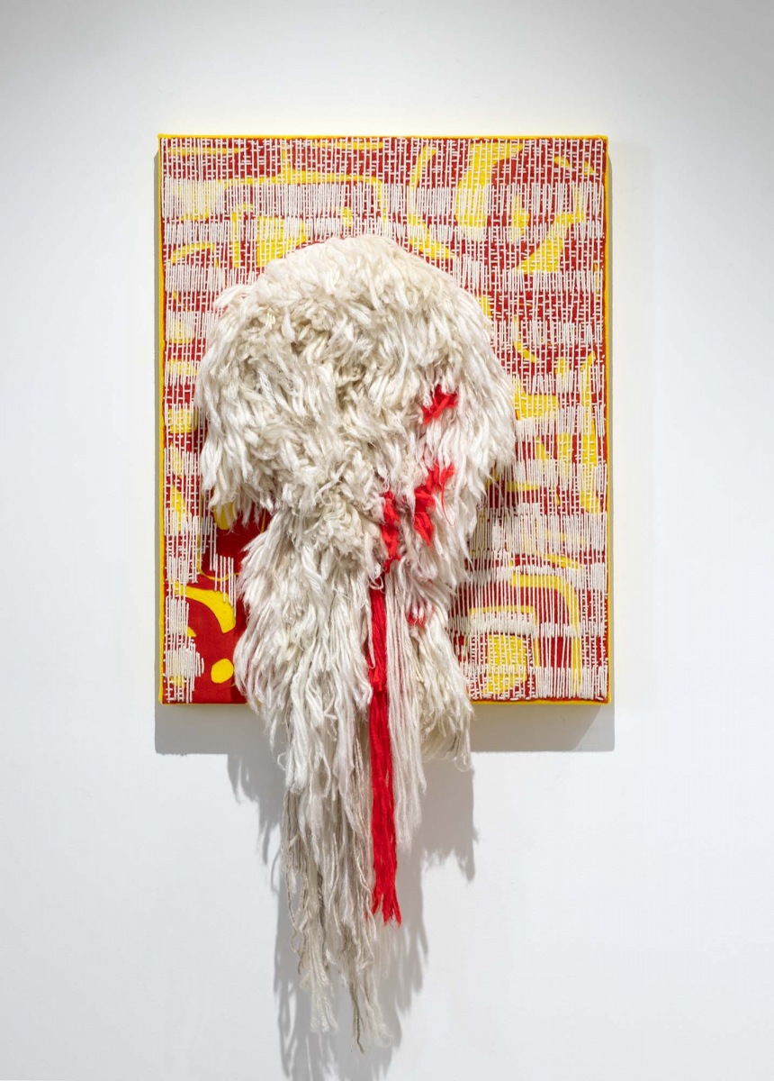 PATRICIA SWEETOW GALLERY is excited to present the dazzling textile works of Julia Couzens. Working intuitively rather than executing preconceived ideas, Couzens’s singular approach to her studio practice begins in picking through practical things around her, the mundane heap of life. Taking these things as they are, alert to what comes alive in her hand and triggers her senses, Couzens fashions abstract works both improvisational and acutely considered.