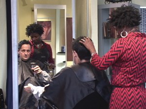 Recognized nationally and internationally for their contributions to the field of video art, Jeanne C. Finley and John Muse‘s recent collaborations are realized in four video diptychs in the series Clockwork. The videos convert a full day of activity into a densely structured 4-6 minute work.  Multiple cameras, positioned on people at work or play, record a half-second of video every thirty seconds.  When played together, the multiple channels syncopate the interactions between the characters with the location and its ambient sound. Shampoo, Drill, Massage, and Birthday capture a day in a Hair Salon, a day with a Dentist, a day with a Masseuse, and a young boy’s Birthday Party. The videos suggest the possibility of narration, for which the team of Finley/Muse is known, but instead resolve in abstract random moments.